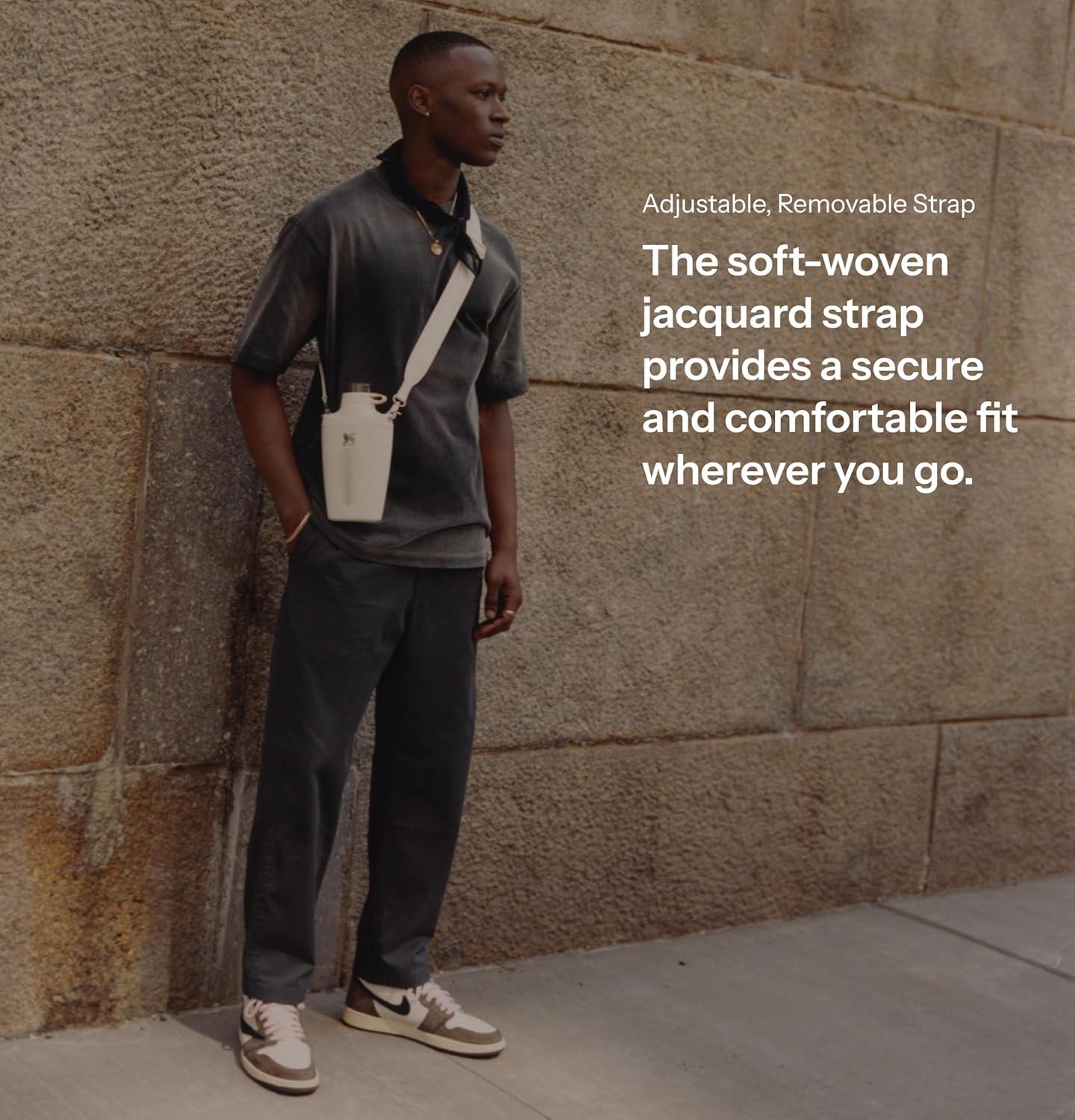Stylish Hydration On-the-Go: The Stanley Cross Bottle combines fashion and function with color blocking details in classic neutrals and cool-toned pops. Perfect for outdoor urban exploring and year-round travel, this trendy sport water bottle keeps you hydrated in style. The soft-woven jacquard strap allows for hands-free carrying, making it an ideal bottle for those always on the move.