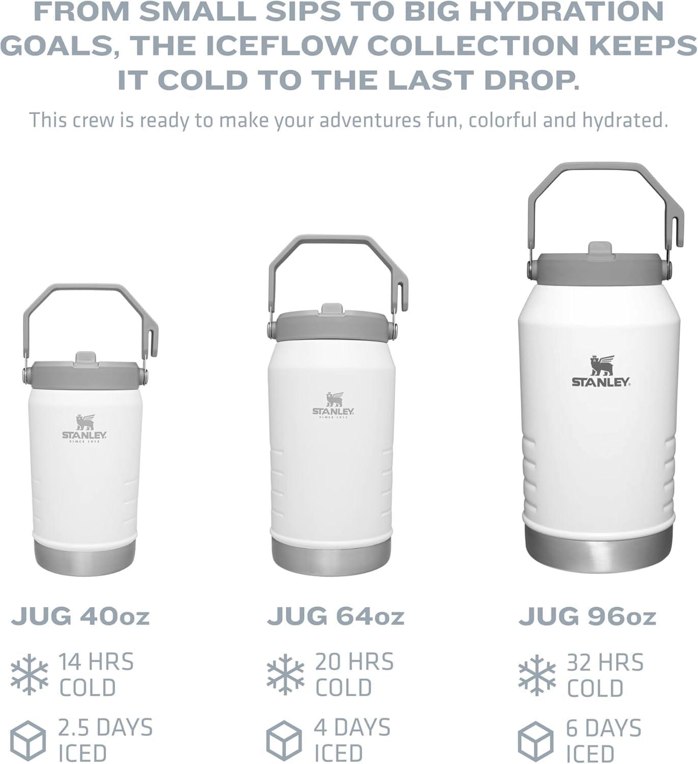 Now in recycled stainless steel, the IceFlow 2.0 Jug is sustainable hydration with fewer refills. It’s ready to pack in your car and head out. The Flip Straw 2.0 lid lets you hydrate faster and stays leakproof when closed. The IceFlow 2.0 Jug with Flip Straw Lid has a wider opening and built-in straw for quick sipping. Just flip up to drink, then snap shut when you’re done. Thanks to double-wall vacuum insulation, your drink stays cold for hours. Grab the large easy-carry handle and you’re ready for a well-hydrated day.