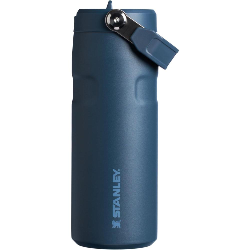STANLEY IceFlow Flip Straw 2.0 Water Bottle 24 OZ | Built-In Straw with Larger Opening | Lightweight & Leak-Resistant | Insulated Stainless Steel | BPA-Free | Black 2.0(Navy)