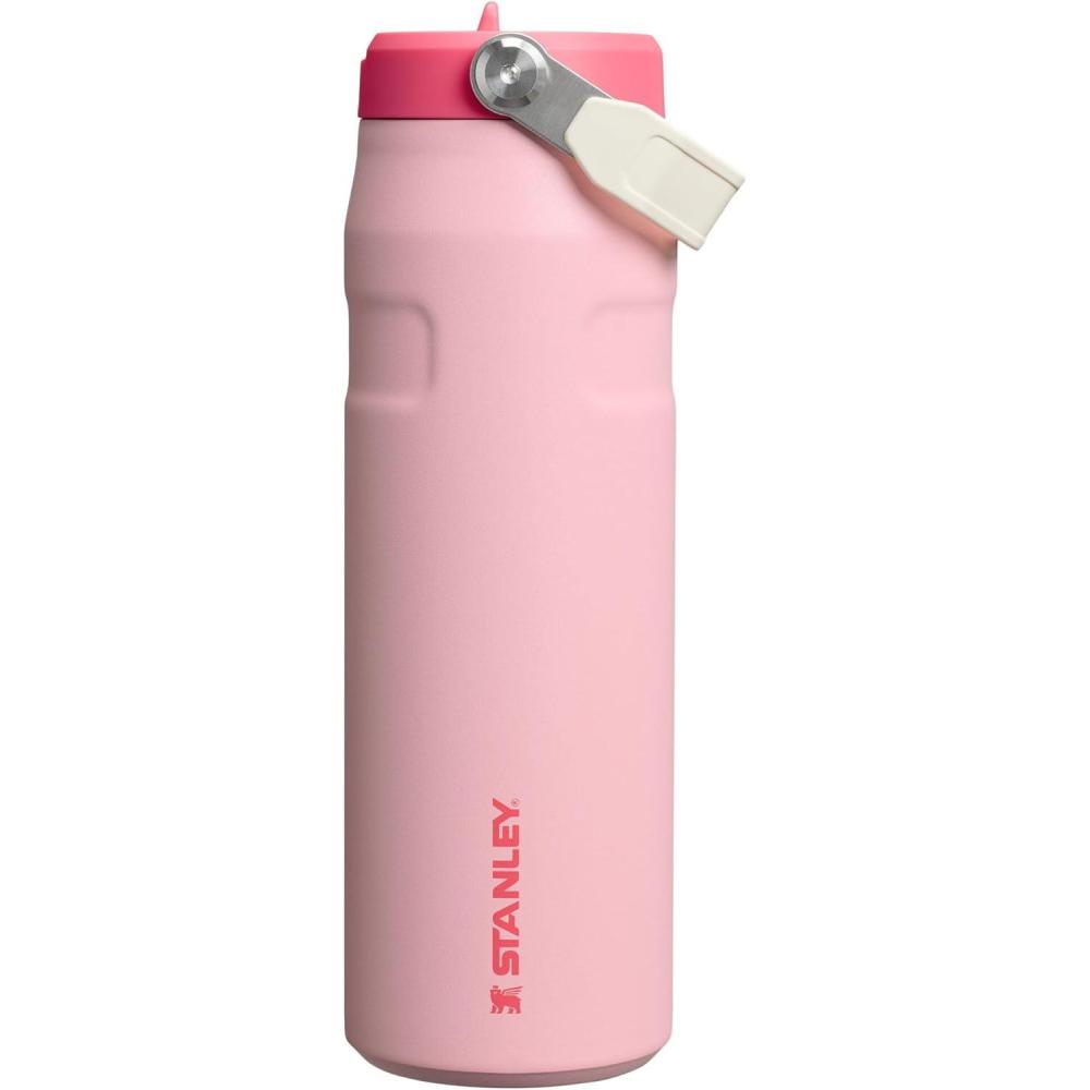 STANLEY IceFlow Flip Straw 2.0 Water Bottle 24 OZ | Built-In Straw with Larger Opening | Lightweight & Leak-Resistant | Insulated Stainless Steel | BPA-Free | Black 2.0(Strawberry Cream)