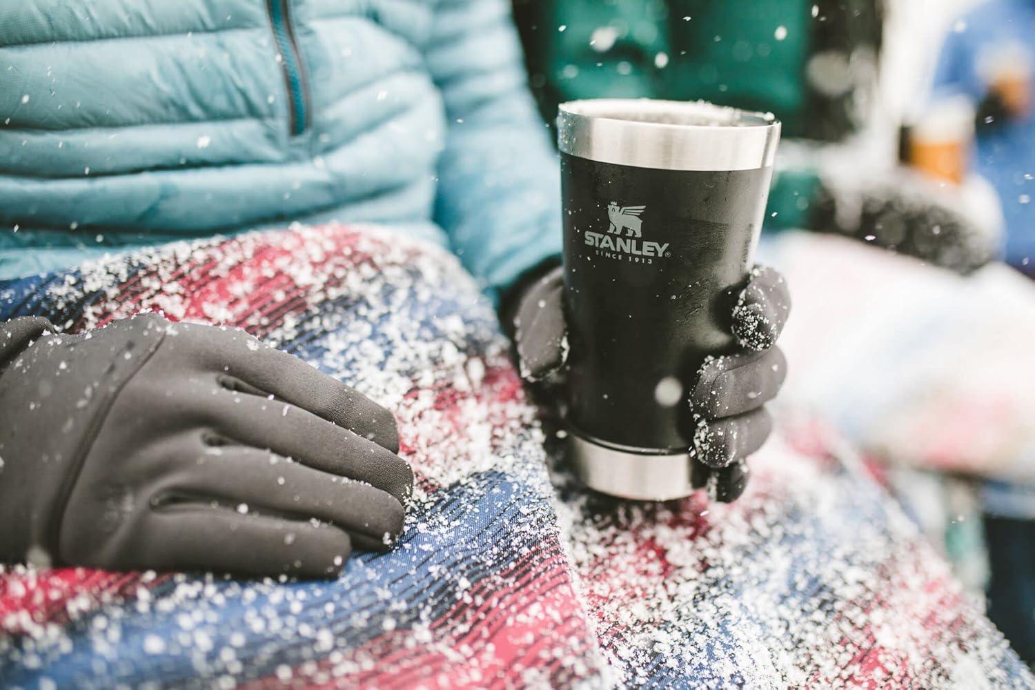ICE COLD REFRESHMENT: Thanks to the double-wall insulation, the Stanley insulated pint glass keeps drinks cold for up to 4 hours and iced up to 17 hours while keeping the exterior sweat-free. It also retains heat for 1 hour for coffee on the go.
